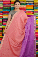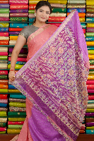 Fancy Crepe Silk Tie And Die Checks Peach With Lavender Saree