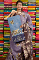 Fancy Doriya Silk Elephant Design Blue With navy Blue Saree