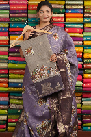 Fancy Doriya Silk Elephant Design Elephant Grey With Purple Saree