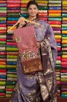 Fancy Doriya Silk Elephant Design Pink With Brown Saree