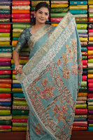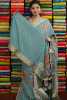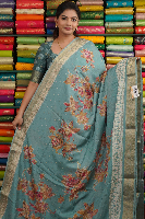 Fancy Georgette Floral Print Light Sea Blue Saree