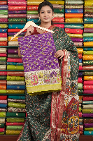 Fancy Mangalagiri Silk Printed Purple With Pesara Green Saree