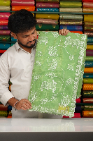 Fancy Paper Silk Embroidary Work Dark Neon Green Saree