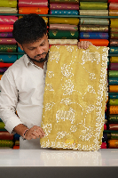 Fancy Paper Silk Embroidary Work Golden Yellow Saree