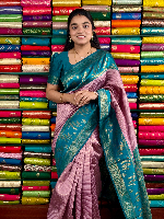 Fancy Pattu Doriya Lines Onion Pink With Green Saree