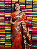 Fancy Pattu Kanchi Border And Butti Rust Orange With Brown Saree