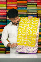 Fancy Pythoni Silk Meenakari Animal Design Yellow With Lavender Saree
