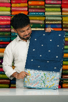 Fancy Pythoni Silk Silver Zari Polka Dot Butti Peacock Blue With Light Blue Saree