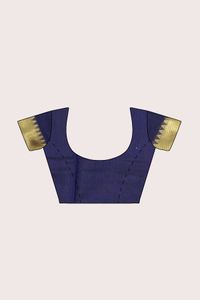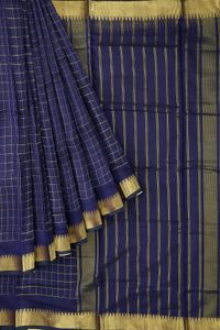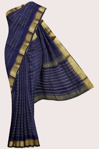 Fancy Semi Mangalagiri Checks And Gold Zari Weaving Dark Navy Blue Saree