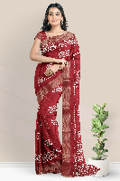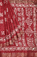 Fancy Silk Batik Print Sequence Work Bright Maroon Saree