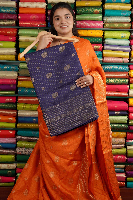 Fancy Silk Checks Dark Navy Blue Saree