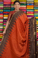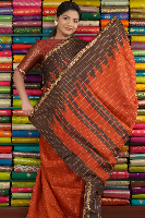 Fancy Silk Checks Orange With Brown Saree18
