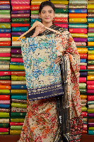 Fancy Silk Digital Print Beige With Blue Saree