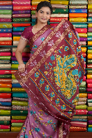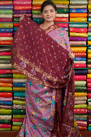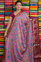 Fancy Silk Floral Print Onion Pink With Wine Saree