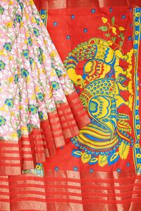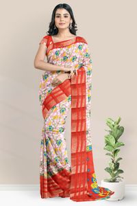 Fancy Silk Gap Border Peach And Red Saree