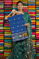 Fancy Silk Gold Peacock Butti Peacock Blue Saree