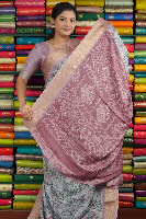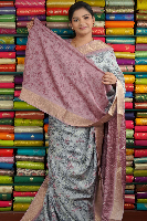 Fancy Silk Leaf Design Light Grey With Onion Pink Saree