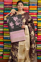 Fancy Silk Print With Zari Checks Black With Lilac Saree
