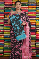 Fancy Silk Printed Black With Coppersulphate Blue Saree
