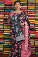 Fancy Silk Printed Black With Grey Saree