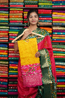 Fancy Silk Printed Yellow And Pink Saree