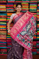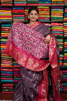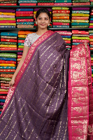 Fancy Silk Zari Lines Dark Mouve And Pink Saree