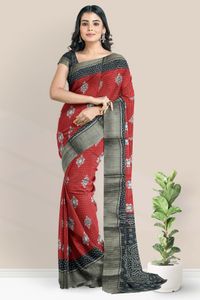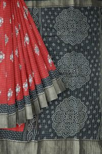 Fancy Soft Bandhini Print And Zari Weaving Red With Black Saree