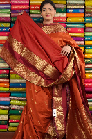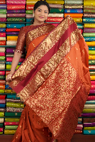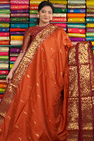 Fancy Soft Pattu Gap Scut border Rust Orange With Maroon Saree