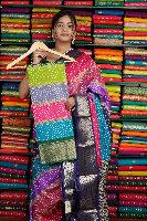 Fancy Soft Silk Bandini Design Coppersulphate Blue And Green mix Saree
