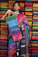 Fancy Soft Silk Bandini Design Navy Blue And Pink mix Saree