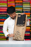 Fancy Threading Work Scallop Border Light Honey With Black Saree