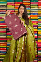 Fancy Tussar Gold Zari Butti Wine Saree