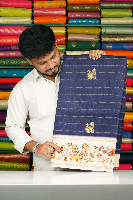 Fancy Tussar Silk Kalamkari Print Dark Navy Blue With Cream Saree