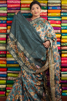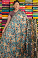 Fancy Tussar Silk Kalamkari Print Light And Dark Rama Green Saree