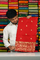 Fancy Viscose Georgette Gold Zari Peacock Butti Maroon Red Saree
