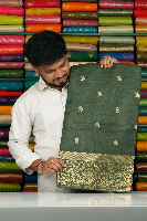 Fancy Viscose Georgette Gold Zari Peacock Butti Seaweed Green Saree