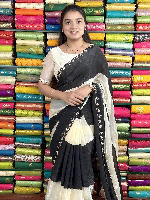 Fendi Silk Handmade Cutdana Beads Work Black And Cream Saree