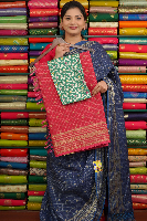 Gadi Silk Gold Zari Checks And Butti Red With Green Saree