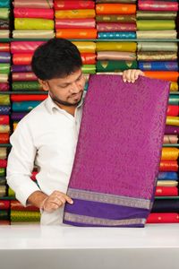 Georette Full Jal Kalamjali Design Gap Border Brinjal With Purple Saree