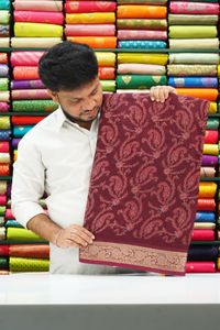 Georgette All Over Mango Print Dark Wine Saree