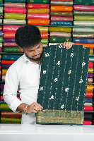 Georgette Badla Zari Weaving Line Dark Green Saree