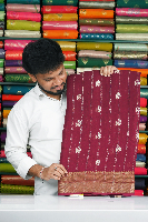 Georgette Badla Zari Weaving Line Dark Wine Saree