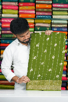 Georgette Badla Zari Weaving Line Mehandi Green Saree