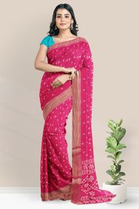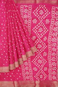 Georgette Bandini Print Pink With Rama Green Saree