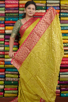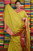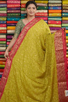Georgette Braso Allover Design Pesara Green With Pink Saree