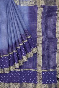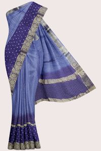 Georgette Checks With Bandhani Border Light Blue And Dark Navy Blue Saree