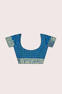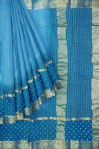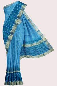 Georgette Checks With Bandhani Border Light Sky Blue And Dark Blue Saree