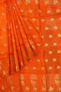 Georgette Cow Design With Pichwai Zari Weaving Orange With Wine Saree