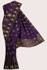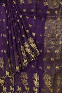 Georgette Cow Design With Pichwai Zari Weaving Purple With Yellow Saree