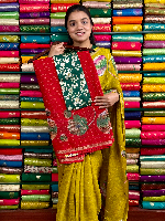 Georgette Crepe Checks And Digital Print Red With Green Saree